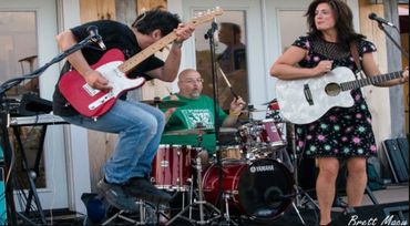 Carol and Will Patton play on the deck of the golf course while attendees enjoy an all you can eat buffet and beautiful sunset!